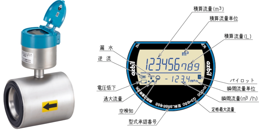 Alarm display: Notifies abnormal metering by displaying alarms for backflow, empty detection, leakage, battery voltage, excessive flow, etc.