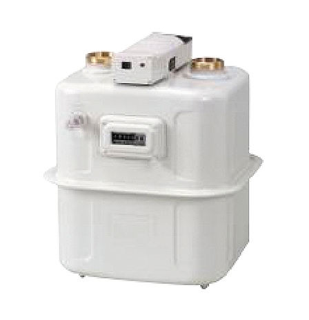 業務用遮断弁内蔵メーターは、膜式スマートメーター業務用4号、6号、業務用マイコンメーター10号、16号で計量できないさらに大口の業務用に開発されたもので、25、40m³/hの2タイプがあります。