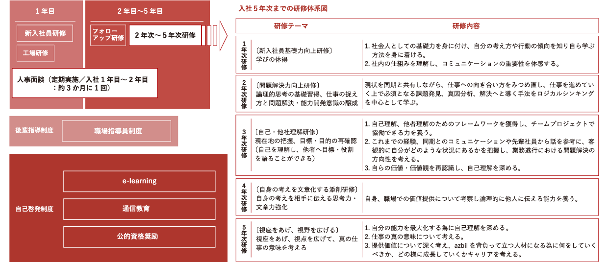 また入社1年目~5年目までの社員を対象に年に1日~2日、年次研修を実施しています。